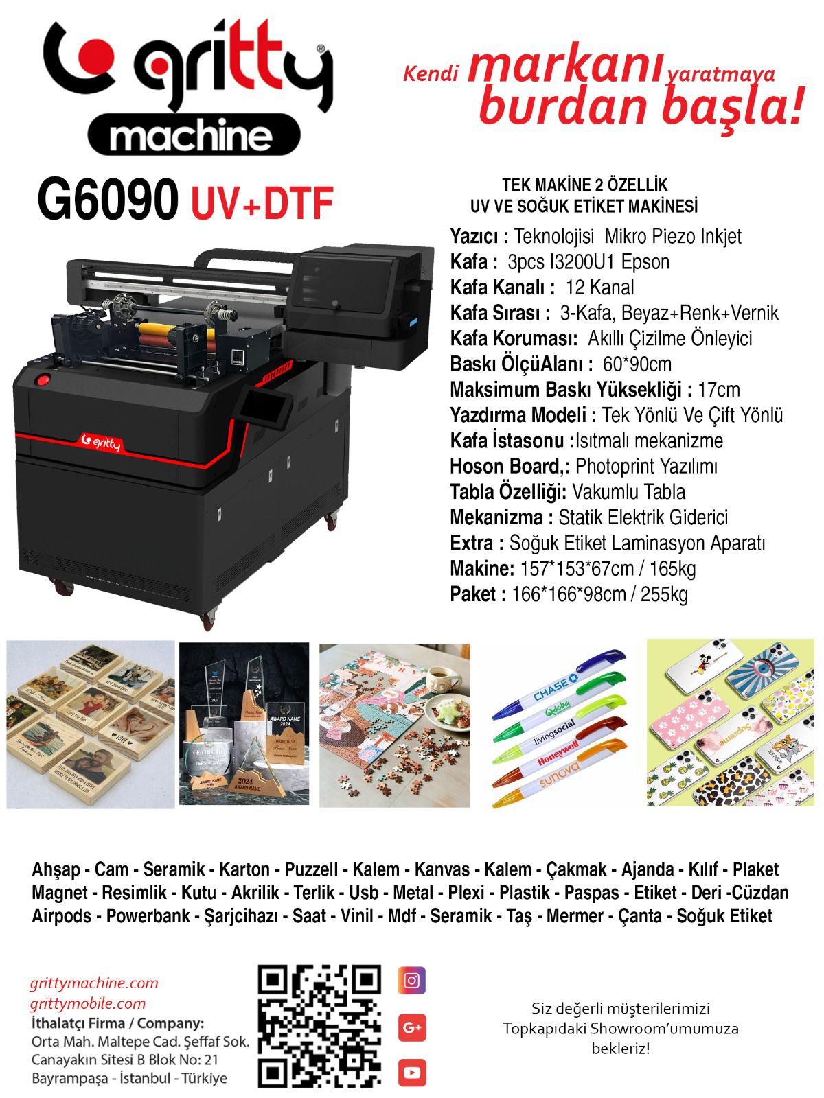 | Üretim Amaçları | Promosyon üretimi, kişiye özel ürün, etiket & DTF baskı, reklamcı vb |